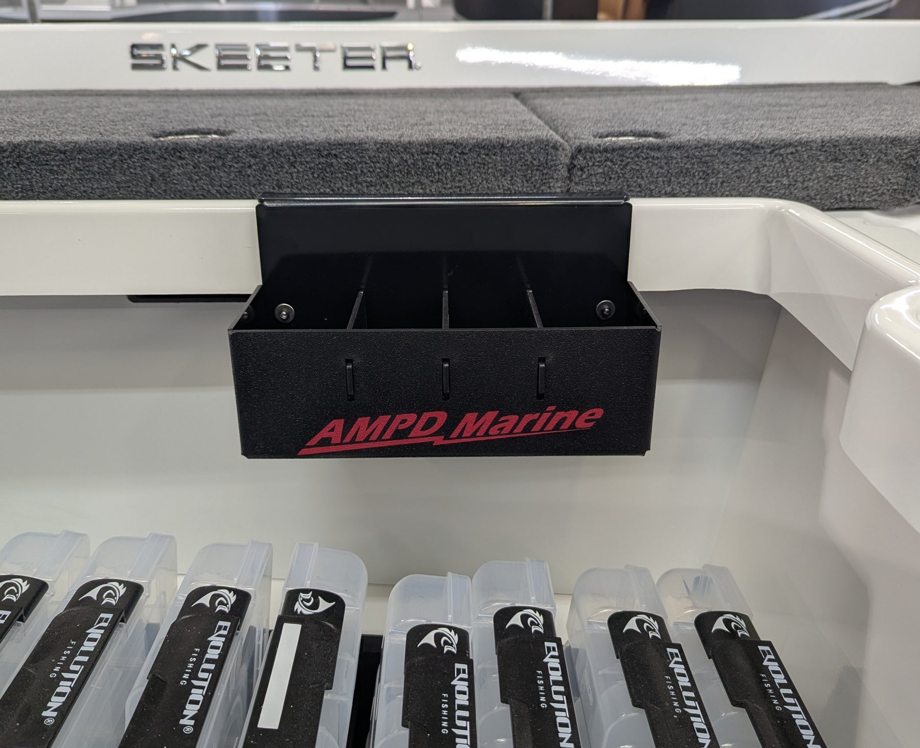 A unique sliding tray with removable dividers that will hang in any compartment of the front compartments of the Skeeter ZXE. For your rear compartments see the NPDSK0039 or the NPDSK0061